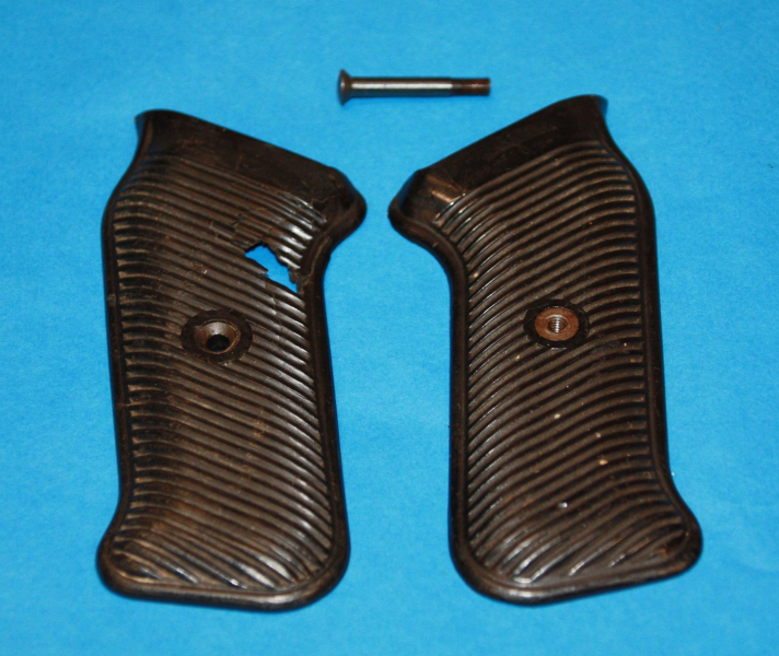 Originale Griffschalen mit Schraube. Einer hat ein Loch, ansonsten sind sie in gutem Zustand.