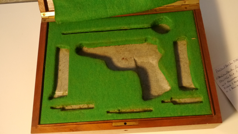 Angeboten Wird ein Nussbaumkasten für die Pistole Walther Mod PP mit Aussparungen für 2 Magazine und Reinigungsbürsten