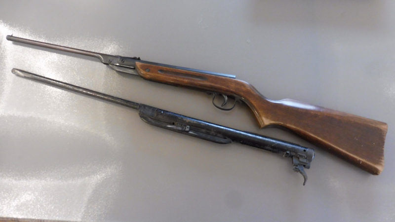 You are bidding on a DIANA Mod. 27 air rifle without a stock. And an English rifle, brand Wilbro Mod. 22, likely a replica of the DIANA Mod. 22. From an estate. The Wilbro rifle is functional. However, the bolt does not lock. Therefore, a special offer of €1.00, for hobbyists/parts. Happy bidding!
