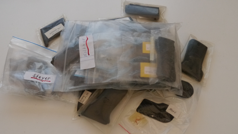 2x Echasa 7,65, 2x Astra 3000, 3x Le Francois 6,36, 1x Steyer 1909 7,65, 2x Steyer M 09 6,35, 1x Bernadelli Mod 60 7,65/22, 2x Astra Cup 6,35