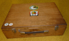 Zum Verkauf kommt der abgebildete gebrauchte Waffenkoffer aus Holz.