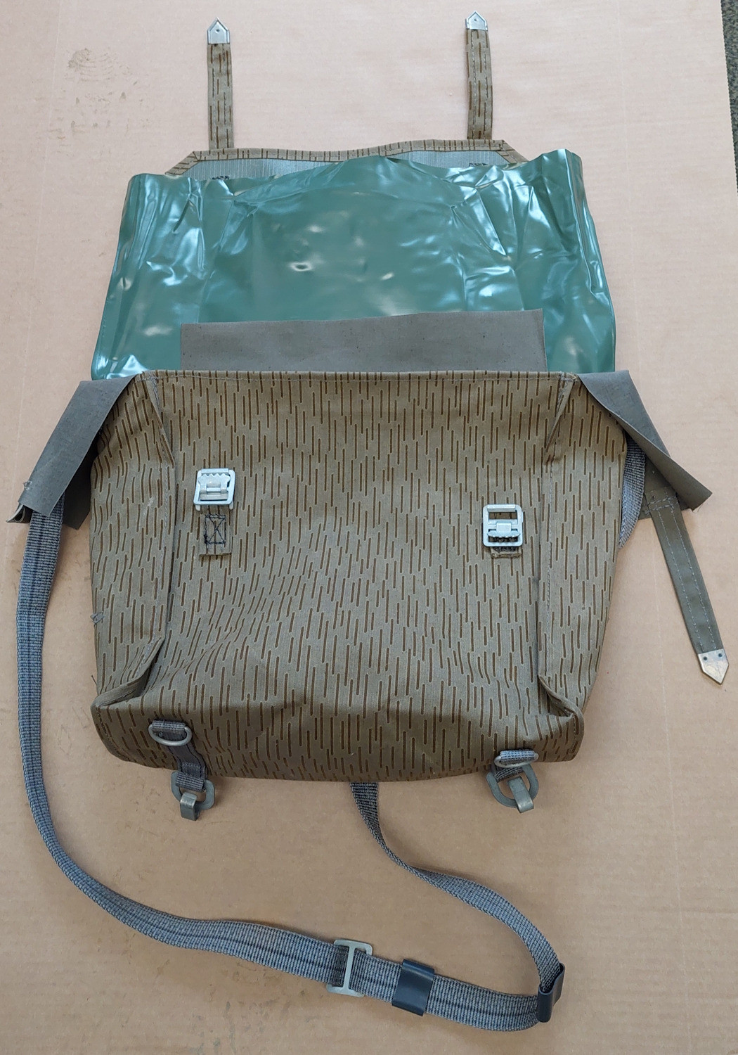 Farbe: NVA - olivgün (,,Ein Strich, kein Strich", Strichtarnmuster), grosses geräumiges Hauptfach mit PVC Wasserschutz,