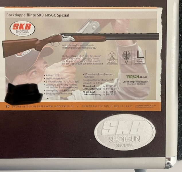 In dieser Auktion bieten Sie auf eine SKB 605 GC (Game und Competition) mit einer Lauflänge von 76cm für Rechtsschützen im Original-Flintenkoffer mit vollständigem Zubehör.