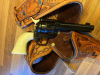 Aus der Sammlung eines verstorbenen Vereinsmitglieds .Ein sauberer,weil nicht geschossener SAA von Weihrauch mit PTB 788.Griffe elfenbeinfarbener Kunststoff.Weihrauch hat die Produktion eingestellt!Dazu ein vor 4 Jahren aus Hollywood mitgebrachtes Quick Draw Holster mit ausgeprägtem Köcher für schnelles Ziehen,wunderschöne Lederarbeit..Gekauft bei Wm.Brown Holster Co. in Hollywood .Ungetragen!Mit Fakepatronen!