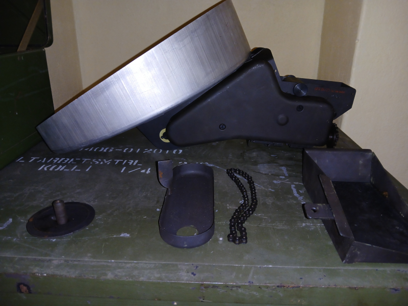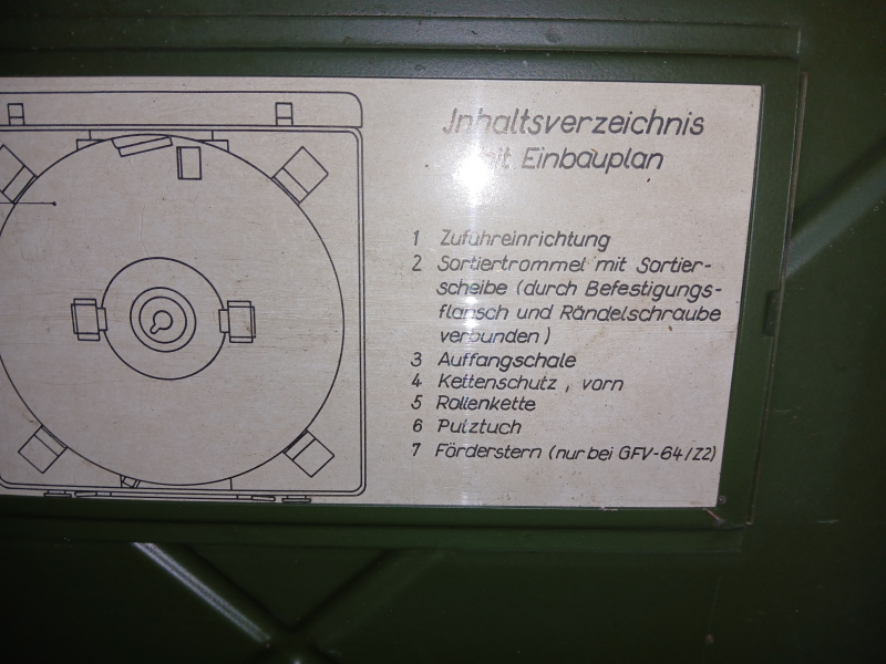 GFV-64/Z1; sehr guter Zustand; in der Box befinden sich die Zuführeinrichtung, die Trommel, Auffangschale, Kettenschutz und die Rollkette;