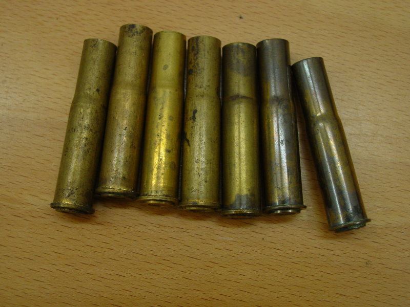 7 Patronenhülsen 71, Zustand siehe Bild. Die Hülsen sind leer, lediglich die Zündhütschen sind unversehrt. Dies ist ein Privatverkauf, keine Rücknahme, keine Garantie und Gewährleistung. Vorbehaltlich Irrtum