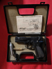 Lieferufang : Walther P88, Zusatzlauf zum Verschießen von Pyrotechnik, Reinigungsbürste, Bedienungsanleitung, Waffenkoffer ( leicht geschädigt )