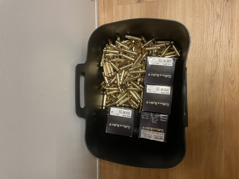 Biete 500 Hülsen, Kaliber .308, Marke S&B. Sortenrein jedoch nicht losrein. Hülsen sind entzündert und im Tumbler nass gereinigt. Hülsen wurden in einem Indoorstand im Rahmen der jagdlichen Ausbildung verschossen. Teilweise in den Originalschachteln.