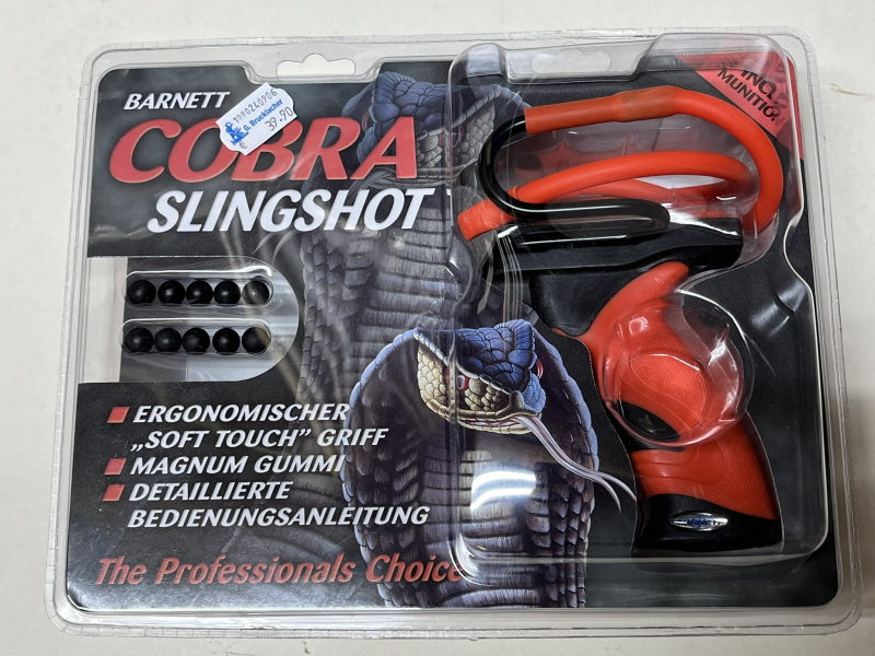 Die Sport-Schleuder Cobra von Barnett verfügt über einen robusten Kunststoff-Griff in einem progressiven Design. Die ergonomische Konstruktion bietet eine besonders sichere Handlage. Das Gummi ist leicht auswechselbar. Verkauf an Personen ab 18 Jahren.