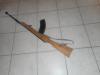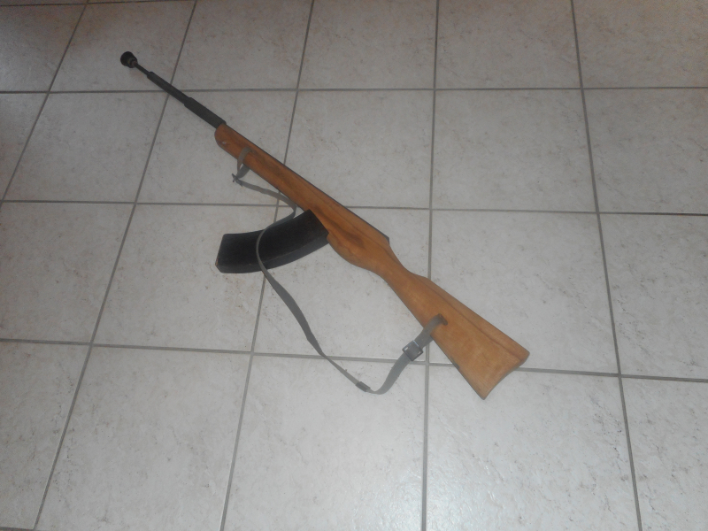 Biete an: ein Holzgewehr mit einer Art Stoßdämpfer vorne mit Gummipuffer, wohl zum Üben gedacht. Ca. 120 cm lang, sehr schwer, da Buchenschaft in Form von UdSSR Waffe, auf jeden Fall war niemals scharf, spitz oder Schußfähig, Deko für Wand oder Stütze für Motorhaube.