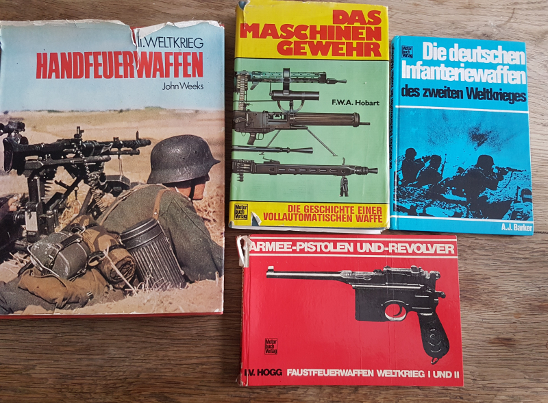 s. Fotos. Reich bebildert und sachlich erklärte Militärwaffen. Ein grober Überblick über Geschichte und Technik. ISBN Nummern zum Vergleich des Neupreises kann ich auf Nachfrage angeben. Die Bücher sind recht geraucht und haben Beschädigungen: Handfeuerwaffen- Ecken bestoßen, Deckeinband gerissen, einige Seiten mit Stempel personalisiert. Armee Pistolen: Einband hinten gerissen, alle Seiten aber fest Infanteriewaffen: bestoßen, personalisiert. MG: Deckeinband gerissen, Seiten lose aber alle vorhanden: ALLE Informationen der Bücher sind noch erhalten, das Aussehen hat gelitten. Verlag Wehr und Wissen sowie Motorbuch Verlag