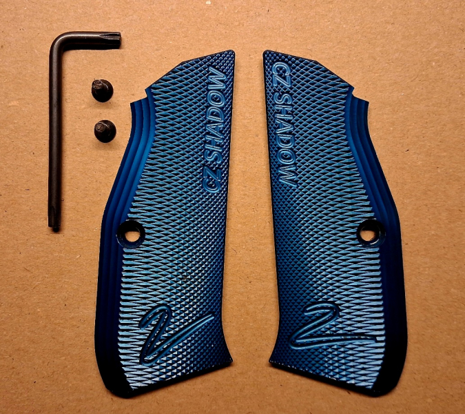 Original CZ Shadow 2 Griffschalen aus Aluminium in blau.