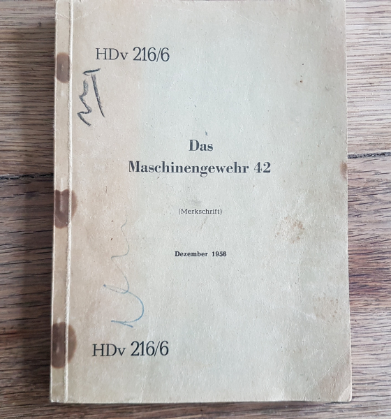 Die Merkschrift selbst ist reichlich bebildert, erklärt Handhabung, Technik Pflege und Einsatz des bekannten MG 42. Als einziger Mangel ist die abgerissene Bildtafel auf dem letzten Foto zu nennen, sie ist sauber vom Blatt getrennt aber in sich unbeschädigt. Garantiert echt und alt.
