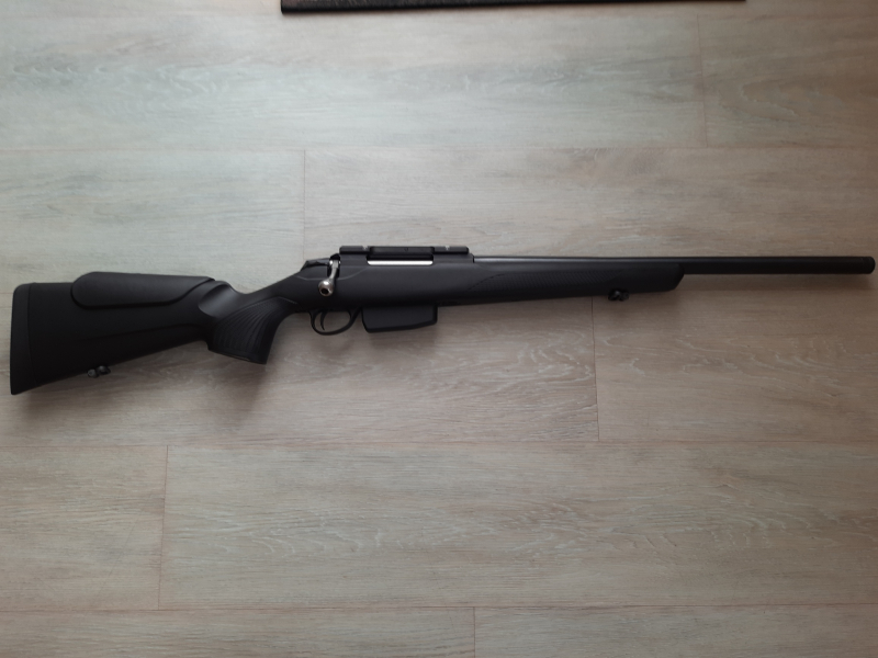 Die Waffe hat 40 Schuss durch und schießt wie auf dem Bild zu sehen auf 100m Loch in Loch. Der Schaft hat allenfalls leichte Gebrauchsspuren. Munition (Hornady Superformance CX und Sellier&Bellot) sowie ein 3-Schuss-Magazin und eine original Tikka-Picatinny-Schiene können bei Bedarf zusätzlich erworben werden.