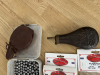 Enthalten sind so zum Beispiel: Pistonschlüssel, Pulverflasche, Geschosse für das Kaliber .45 in Ledersäckchen, 2 Kugelstarter, Schusspflaster in verschiedenen Stärken und manches mehr.