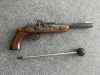Verkauft wird eine Pistole mit Perkussionszündung im Kaliber .50 mit Ladestock, Schusspflastern und Geschossen. Gezählt habe ich 57 Geschosse. Vielleicht ist es aber auch eins mehr oder weniger.