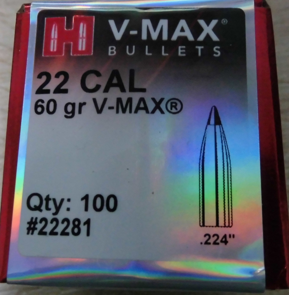 Hallo - biete hier 100 Stück Geschosse von Hornady cal .22 / dia. 224 für z.B. 223rem, 22-250rem usw. mit 60gr V-MAX