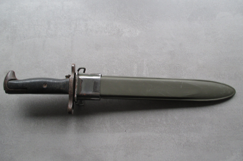 Biete hier aus Sammlungsauflösung ein schönes und originales US Bajonett für den Garand M1 aus dem 2. WK an. Es hat keinen Jahrgangsstempel und ist von der Firma P.A.L.. Zustand siehe Fotos.