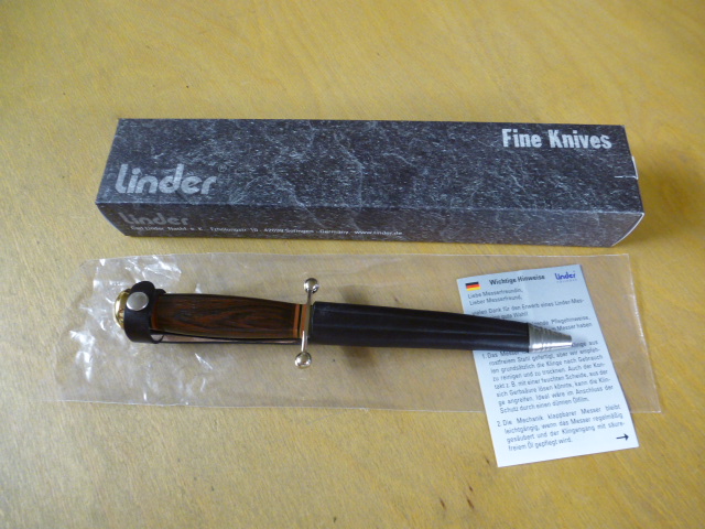Linder - Dolch - Nr. 210613.***********Dolch mit Griff aus Cocoboloholz in traditioneller Ausführung. Parierelement und Knauf aus Messing. Lederscheide. 13 cm Klinge aus 440A Stahl, rostfrei.***********Zustand: unbenutzt - neuwertig in OVP.***********Alternachweis erforderlich ! Entfällt für zertifizierte eGun-Mitglieder (ID-Kennung)*********Privatverkauf ! Keine Garantie ! Keine Gewährleistung ! Keine Rücknahme !********Kein Verkauf ins Ausland ! No sale abroad !********Kein Versand ins Ausland ! No international shipping !**********Versand erfolgt als DHL-Paket für 8,- EUR.