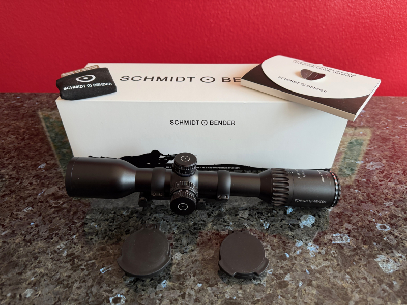 Ich verkaufe ein neuwertiges Schmidt und Bender Meta 3-18x42 auf original Blaser Sattelmontage mit 30mm Ringen. Es handelt sich also um die Variante ohne Schiene, wurde perfekt vom Büchsenmacher montiert und so gut wie gar nicht genutzt, man findet keine Gebrauchsspuren oder Kratzer daran. Das Zielfernrohr hat die arretierbare Absehenschnellverstellung ASV-II am Höhenturm, 100 Klicks im Uhrzeigersinn sowie eine Parallaxeverstellung. Das Absehen nennt sich LP 7, ist ein feines Absehen 4 und liegt in der zweiten Bildebene. Mit dabei sind die Originalverpackung, Anleitung, Tenebraex-Flip-Caps, ein Reinigungstuch sowie natürlich eine Rechnung für etwaige Garantieansprüche. Rest siehe Bilder, Herstellerseite oder einfach kurz Fragen....