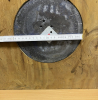 In einer 40x40 cm Sperrholzplatte eingefasst, eine Bleischeibe von fast10 kg.