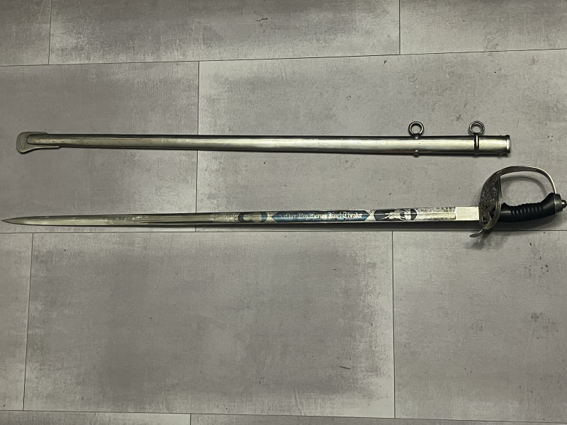 geätzte Klinge " In Treue Fest" und 3. Chev.Reg. Herzog Karl Theodor, das Gefäß ist minimal etwas lockerer