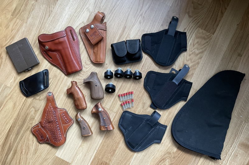 Die Sachen stammen aus dem Besitz meines Vater, der die S&W Revolver 17, 19, 686 und 629 besaß. Das Zubehör passt also zu diesen Modellen, nur kann ich leider nicht sagen, welches Teil zu welchem Revolver gehört.