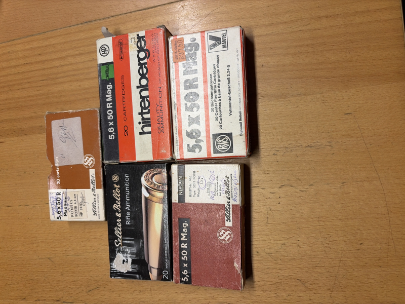 Ich habe meinen Schrank ausgemiste und da kamen ca. 68 Schuss alte Munition hervor im Kaliber 5,6x50R Mag.