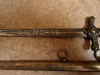 Zum Verkauf steht ein gut erhaltener Marinedolch der Donau-Schiffahrtsgesellschaft "DSG" Österreich-Ungarn. Der Dolch ist 429 mm lang und 324 g (Scheide 73g) schwer. Die schlanke zweischneidige Klinge ist beidseitig geätzt. Die Scheide aus Leichtmetall ist mit zwei Trageringen versehen. Der Griff besteht aus elfenbeinfarbenen Bakkelite. Auf der Vorderseite der Scheide finden sich der Schriftzug DSG, ein Anker und andere maritime Motive. Die Rückseite der Scheide ist glatt gehalten.