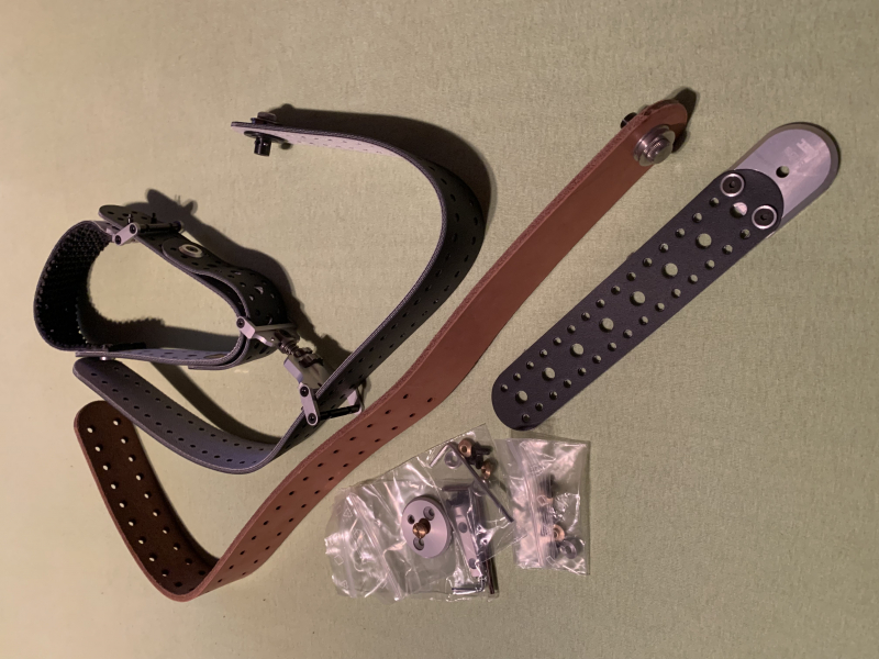 das Band aus Zugleder, sowie alle Teile zur Befestigung.