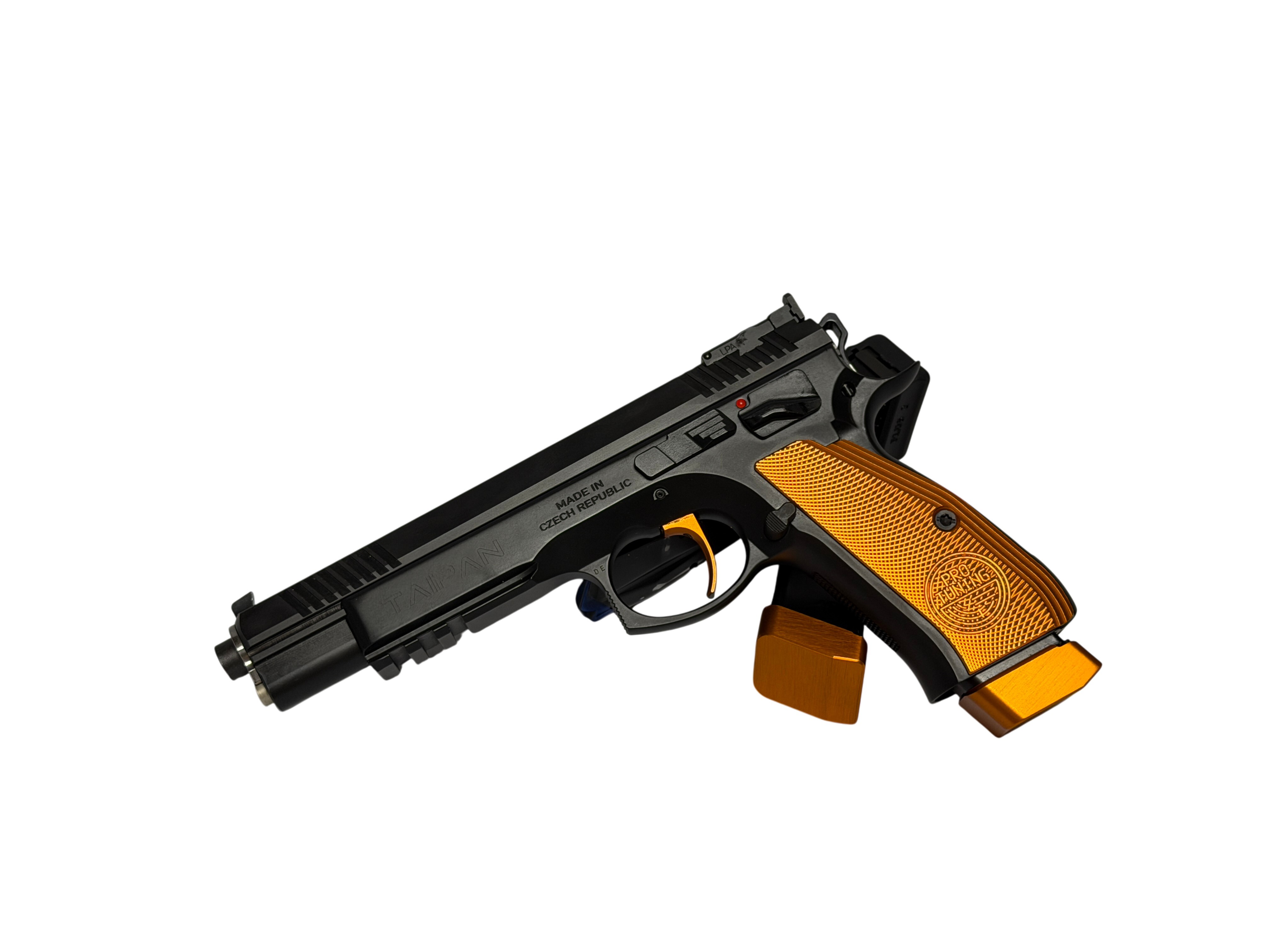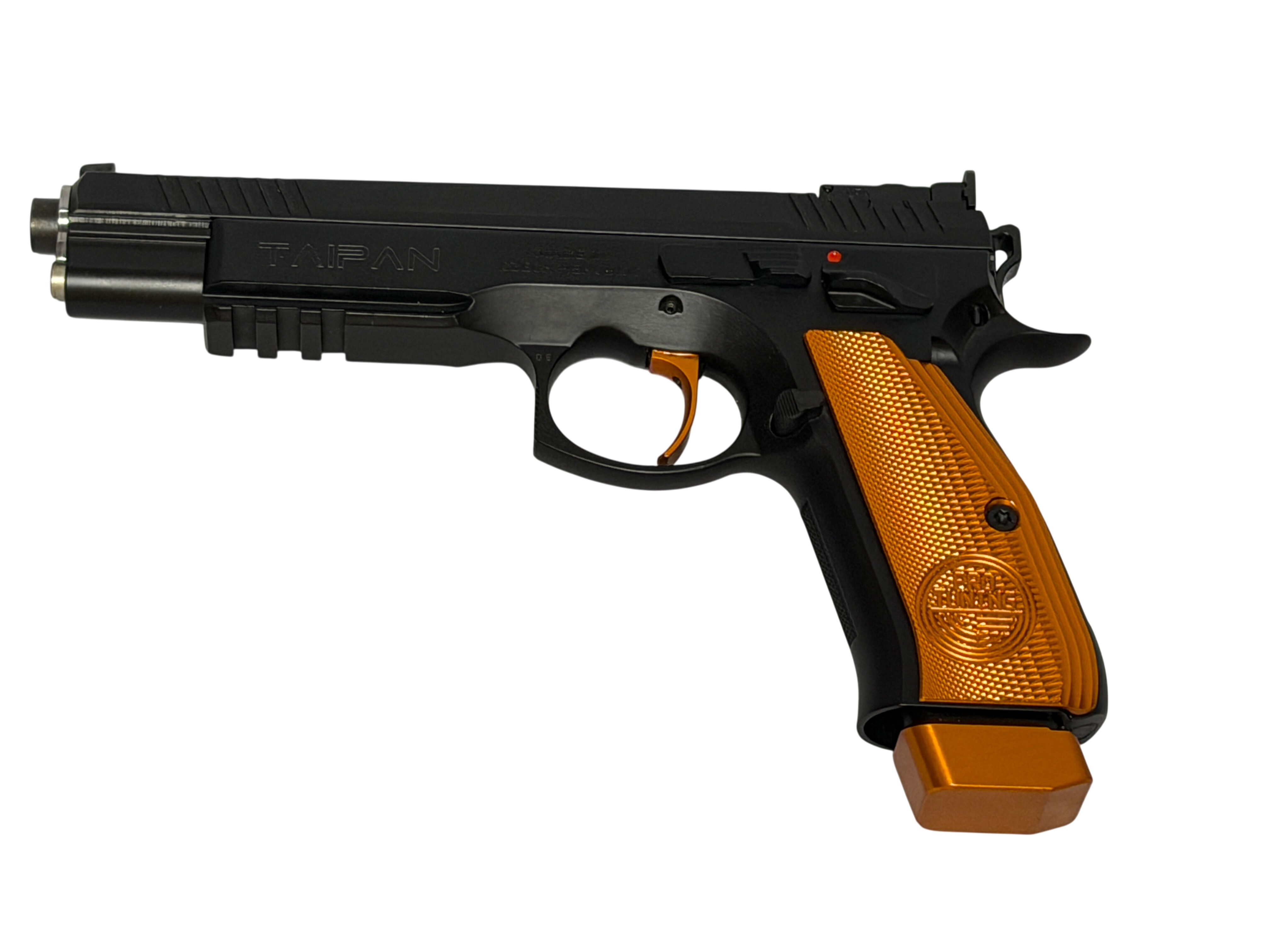 Wir bieten hier im Kundenauftrag eine neuwertigehalbautomatische Pistole aus dem Hause CZ, Modell Shadow Taipan ProTuningim Kaliber 9mm Luger an.