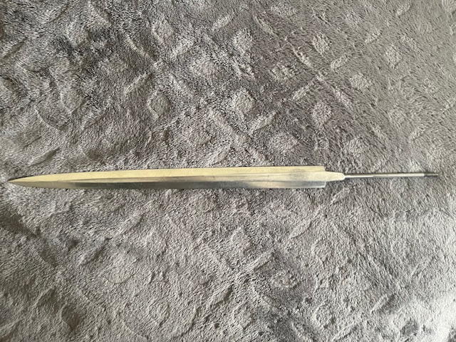 Stahl nicht gehärtet, lässt sich biegen, nicht elastisch. Vermutlich Spätkriegsherstellung