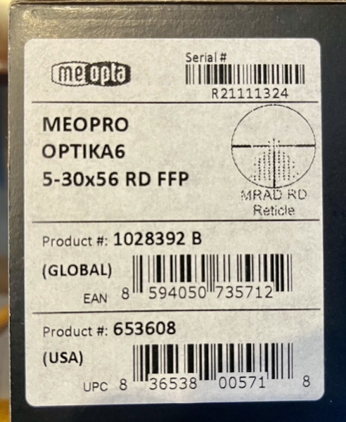 Ich gebe ab ein Meopta Meopro Optika 6 5-30x56 RD FFP mit MRAD RD Leucht Absehen in der 1. Bildebene in einwandfreien Zustand.
