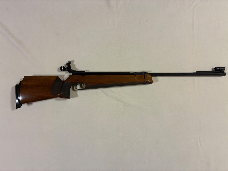 Das Anschütz, mit "F"-Zeichen , ist durch den Ölhydraulikzylinder prellschlag gemindert und war zu seiner Zeit ein herausragendes Matchgewehr.
