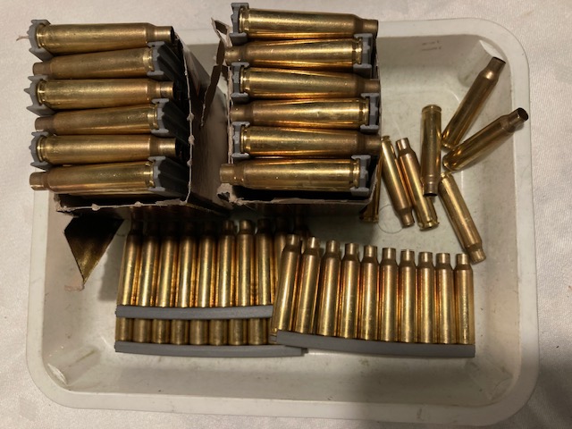Hallo! Auktion für Schützenkamerad. Sie bieten auf 150 Stück .223Rem.-Hülsen von der Firma "Geco 150St. auf Ladestreifen;. Die Hülsen sind aus Messing mit Boxerzündung sie sind nicht bearbeitet oder gereinigt so wie sie vom Stand kommen so wie auf dem Bild zu sehen. Kein Versand ins Ausland nur an Inlandsanschriften. Da Privatverkauf keine Garantie, Rücknahme oder Nachverhandeln. Viel Erfolg beim bieten.<