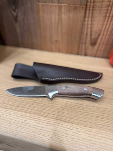 Das Blaser Jagdmesser mit durchgehender feststehender Klinge ist ein vielseitig einsetzbarer Hintergrund für den jagdlichen Einsatz. Die Droppointklinge lässt eignet sich für alle anfallenden Schneidaufgaben. Sie besteht aus rostfreiem Edelstahl der Sorte 440 C. Die Griffschalen aus edlem Walnussholz liegen gut in der Hand und verleihen diesem Messer ein wertiges Äußeres.
