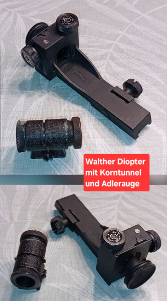 DIOPTER von Walther mit KORNTUNNEL und Adlerauge, das Teil ist voll funktionsfähig alles rastet sauber, versicherter Versand ist per Vorkasse möglich. Versand versichert 8,- Euro EU - Ausland 16,- Euro