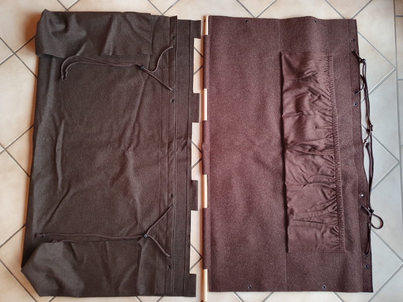 Die Kombi besteht aus dem PWK Futteral für 2 Langwaffen und einer Utensilientasche und einer Lodendecke als Rückbankschutz, alles nie benutzt. Es ist aus braunem Filz und Loden gefertigt. Breite ca. 123 cm.