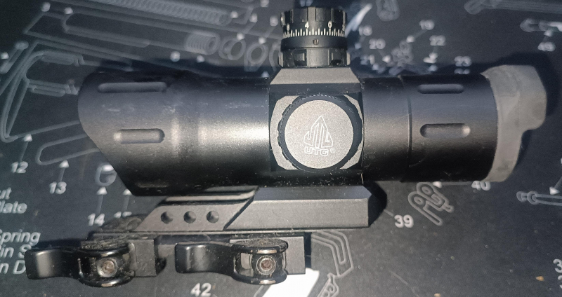 UTG Leuchtvisier mit neuem T-DOT Absehen. Rot/Grün beleuchtet. Absehenverstellung mit 1/2 MOA pro Click und Nullstellung. Der Augenabstand ist unendlich. Die Montagebasis ist mit praktischen QD Schnellverschluss ausgestattet. Im Lieferumfang enthalten: Linsenschutzkappen, Reinigungstuch und zusätzliche Offset-Montageplatte. Vor das Visier kann ein Booster mit 3x Vergrößerung instaliert werden, passend der UTG Magnifier, SCP-MF3WEQS hier bei Amazon erhältlich. Eigenschaften: Vergrößerung 1X, Rohrdurchmesser: 38mm, Objektivdurchmesser: 39 mm, Austrittspupille: 26 mm, Augenabstand: unendlich, Mittelhöhe: 42mm, Länge 6" Gewicht: 371g