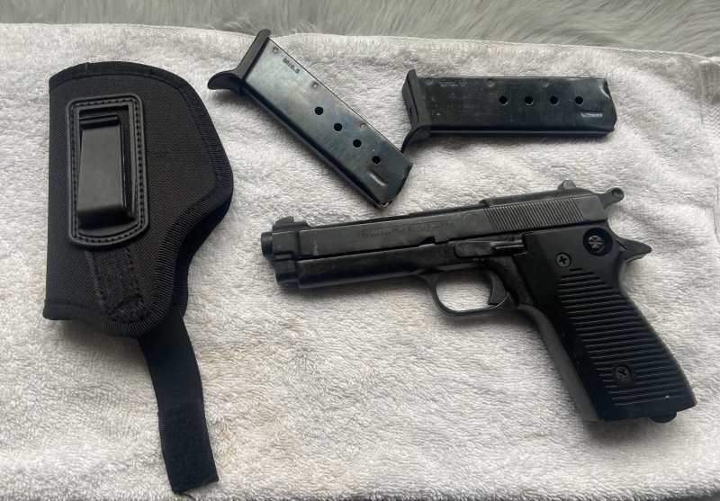 Dabei ist alles was ihr auf den Bildern seht: die Brigadier, 2 Magazine, Holster.