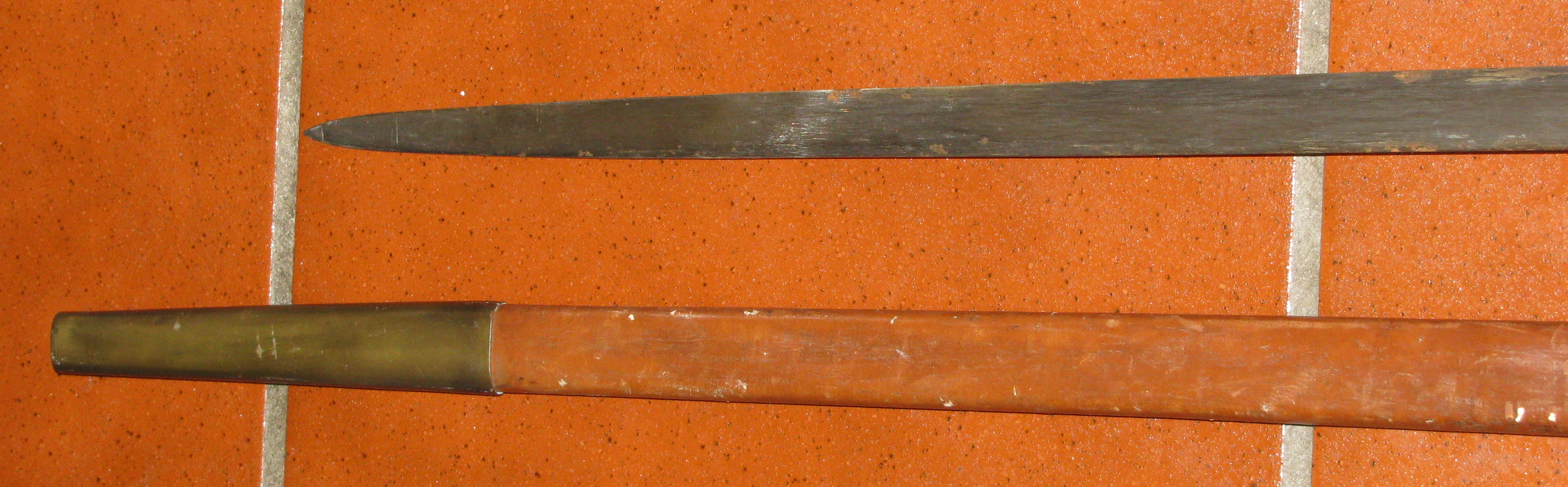Zum Verkauf kommt ein mir unbekannter Degen mit Lederscheide