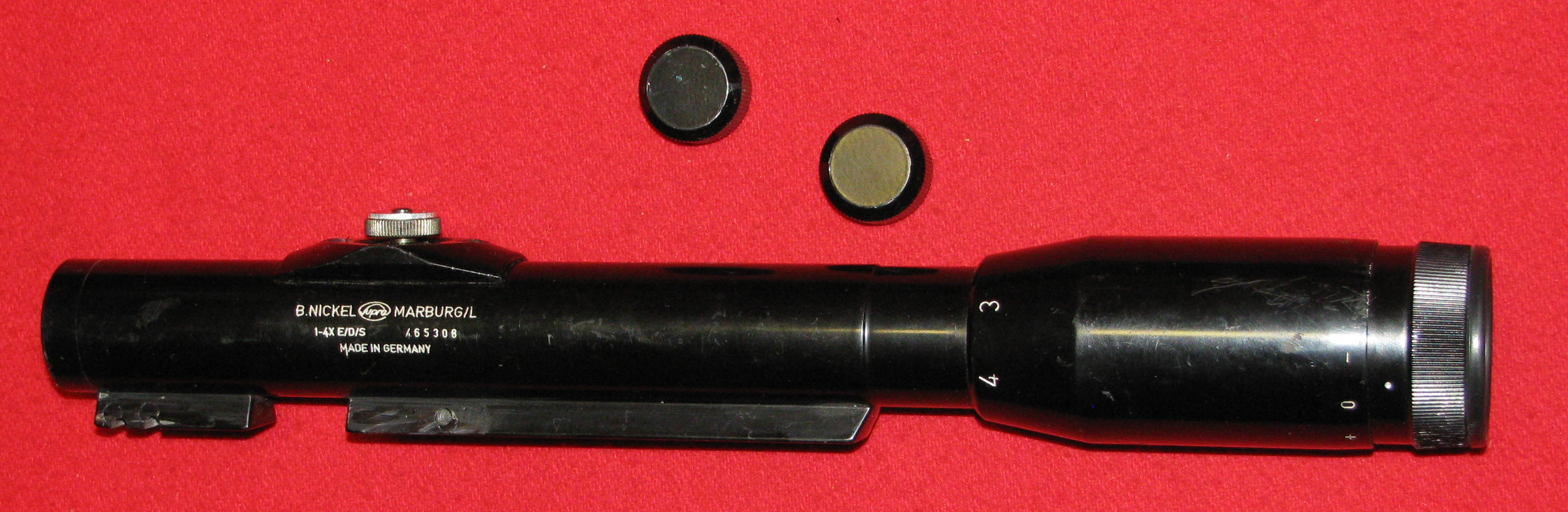 Zum Verkauf kommt ein Drückjagd ZF / Zielfernrohr, ein NICKEL 1 - 4x mit dem Absehen 4