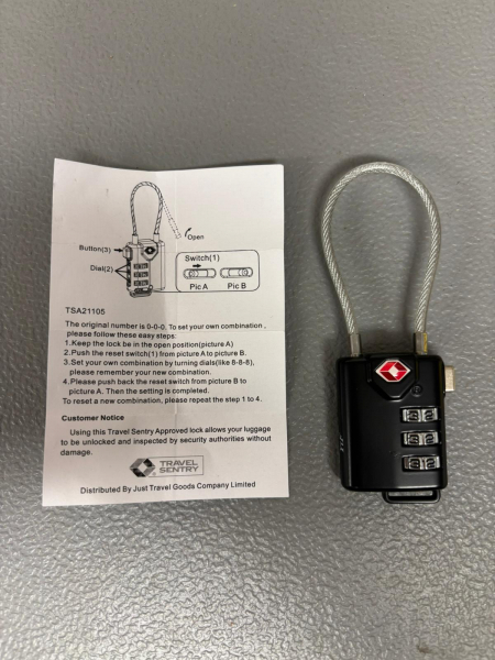 Schloss ist TSA Zertifiziert und kann ohne Zerstörung durch Sicherheitspersonal geöffnet werden z.B. Flughafenpersonal