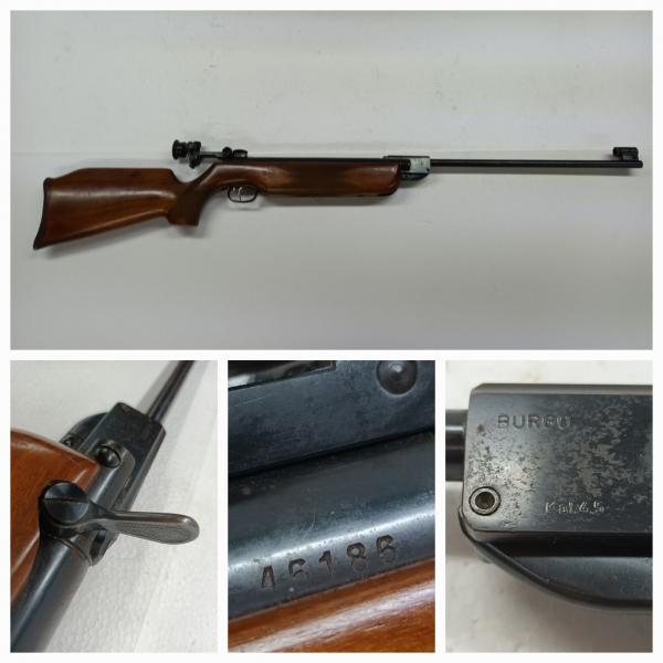 TELEFON 07356-9509284 ---- MEGA SELTENES LG ---- 1. BURGO Match Luftgewehr Cal.4,5mm. Absolut Schussbereit Knicklauf Luftgewehr. Ohne F im Fünfeck. LG müßte 60ziger oder 70ziger Jahre sein. Die Waffe schießt hervorragend mit Ausreichend Druck. Brünierung noch tief schwarz aber nicht mehr ganz glatt. Schaft ist Wunderschön und die Gummi Schaftkappe vom stehen etwas eingedrückt. Der Abzug ist verstellbar. Lauf ist frei (Siehe Fotos) Diopter / Korn verbaut. Volle Technische Funktion. Auf Feder/Dichtungen oder ähnliches, kann ich bei einem LG was älter als 30 bis 60 Jahre ist, leider nicht geben. Ich gehe immer vom IST Zustand aus. (Sammler Waffe) Viel Spaß beim Bieten und beachten Sie bitte auch unsere weiteren Waffen und Zubehör Auktionen. Zustandsbeschreibungen unterliegen immer einer persönlichen Betrachtung bzw. Einschätzung, im Zweifelsfall sind die Bilder in der Auktion ausschlaggebend. Differenzbesteuerung nach § 25a UStG. Die Waffe ist ab 18.Jahre frei erwerblich und nicht EWB-pflichtig. Wir bieten KEINE Sammelbestellungen an.(Liebhaberei da älter als 30 Jahre ist) Jeder Artikel wird einzeln versendet. Keine Haustürgeschäfte.Ich schließe jegliche Sachmangelhaftung aus. Die Haftung auf Schadensersatz wegen Verletzungen von Gesundheit, Körper oder Leben und grob fahrlässiger und/oder vorsätzlicher Verletzungen meiner Pflichten als Verkäufer bleibt uneingeschränkt. Einen Amtlichen Altersnachweis ist Erforderlich -----!!!---- KEIN internationaler Versand (NO international shipping) !!!!!!!!!! MFG
