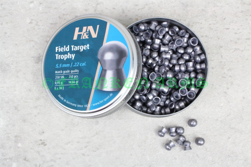 Mit einem Gewicht von 0,96g handelt es sich bei der Luftgewehrkugel Field Target Trophy 5,5mm um eine mittelschwere, hochpräzise Wettkampf- und Jagdkugel mit flacher Flugbahn für mittlere Distanzen.