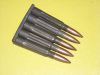 Sie bieten auf einen Ladestreifen mit 5 Stck. Exerzierpatronen im Kal. 8x57IS. Die Hülsen bestehen aus lackiertem Stahlblech, alle Exerzierpatronen haben denselben Bodenstempel "bxn 54". Die Expatronen sind wie neu und unbenutzt. Privatverkauf, keine Garantie, keine Rücknahme.