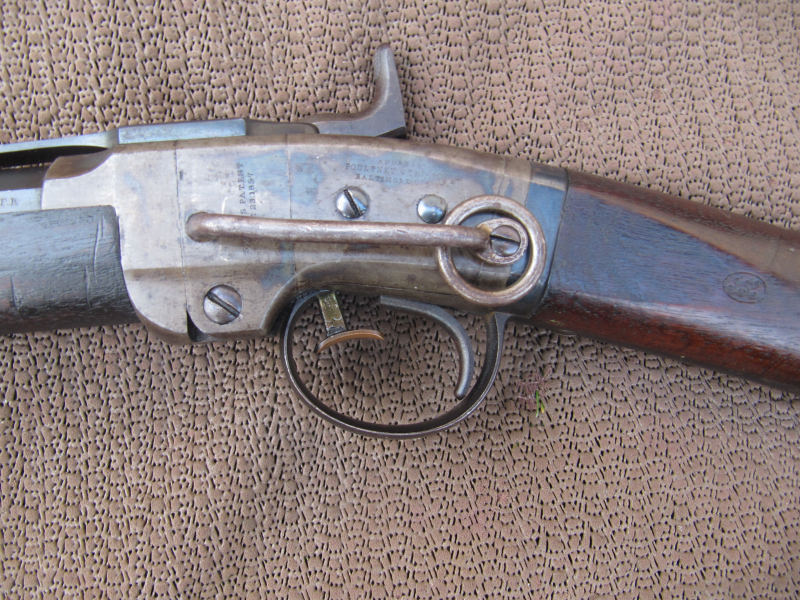 Ich verkaufe einen originalen U.S. SMITH Perkussionshinterladerkarabiner mit Kipplaufverschluss im Kal.50 aus der Zeit des amerikanischen Bürgerkrieges in einem sehr guten Zustand. Der 21-5/8" Lauf mit 3 Zügen ist innen spiegelblank mit einem scharfen Feld-Zugprofil. Das Patronenlager ist glatt und ohne Rostnarben. Das blaue Originalfinish der glatten Laufoberfläche ist leicht nachgedunkelt und zu 90% vorhanden. Keine Rostnärbchen oder pitting. Die Schuß-und Laderast des Schlosses funktioniert perfekt. Die Kipplaufmechanik rastet straff. Die Sperrklinke schliesst fest. Kein wackeln im Scharnier. Der Systemkasten, hat noch ca. 70% der ursprünglichen Bunthärtung, welche an der rechten Seite partiell Patina zeigt. Der Karabiner hat die Originalvisierung. Das Originalpiston befindet sich in einem sehr guten Zustand, der Zündkanal ist frei. Auf der linken Seite des Systemkasten sind klar der dreizeilige Händlerstempel: " ADDRESS / POULTNEY & TRIMBLE / BALTIMORE U.S.A. " und der zweizeilige Patentstempel: " SMITH'S PATENT / JUNE 23 1857 " sowie der Herstellerstempel: " MANUFACTURED BY / AM'N M' CH'N WKS / SPRINGFIELD MASS " zu erkennen. Auf der linken Seite befindet sich die Reitstange mit dem Karabinerring zum Befestigen des Karabiners an den Karabinergurt des Kavalleristen. Der rotbraune, amerikanische Nussbaumschaft befindet sich in einem sehr guten Zustand mit geringen Gebrauchsspuren. Keine Risse, Absplitterungen oder Brüche. Am linken Schafthals ist im Oval die militärische Abnahmekartusche " JH " (Joseph Hanis ) klar zu erkennen. Super Passungen Holz zu Metallteilen. Der linke Laufanfang ist mit " L.F.R. " für den militärischen Abnahmeinspektor Lafayette F. Rogers gestempelt. Alle Teile sind original. Die Seriennummer lautet: 8XXX, nummerngleich, Baujahr 1863. Die Gesamtlänge der Waffe beträgt 99cm, die Lauflänge 56,5cm. Das Gewicht: 3,35kg. Die U.S. Regierung kaufte während des Bürgerkrieges 30000 Smith Karabiner für ihre Kavallerieeinheiten. Der Smith gehörte zu den vier besten Kavalleriekarabinern, die von der US-Regierung beschafft wurden. Bei Bedarf können weitere Bilder geschickt werden. Ausländische Bieter bitte vor Gebotsabgabe die höheren Versandkosten erfragen.