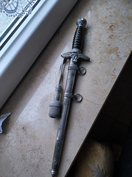 Sammlerauflösung, Luftwaffendolch mit schwarzen Griff ein sogenannter Trauerdolch mit Portepee silberfarben, Hersteller von Eickhorn, Griff schwarz (Trolon/Kunststoff) meist konvex Drahtwicklung, Aluminiumbeschläge, Hakenkreuz alle vorhanden, Gleichbleibender Patina angesetzt, Nach bestem Gewissen beschrieben, Bilder sind Bestandteil der Auktion, Fragen bitte vorher stellen, Bilder schicken ich auch noch gerne, Privat Person keine Garantie nach EU Recht, keine Rücknahme kein Garantie keine Gewährleistung