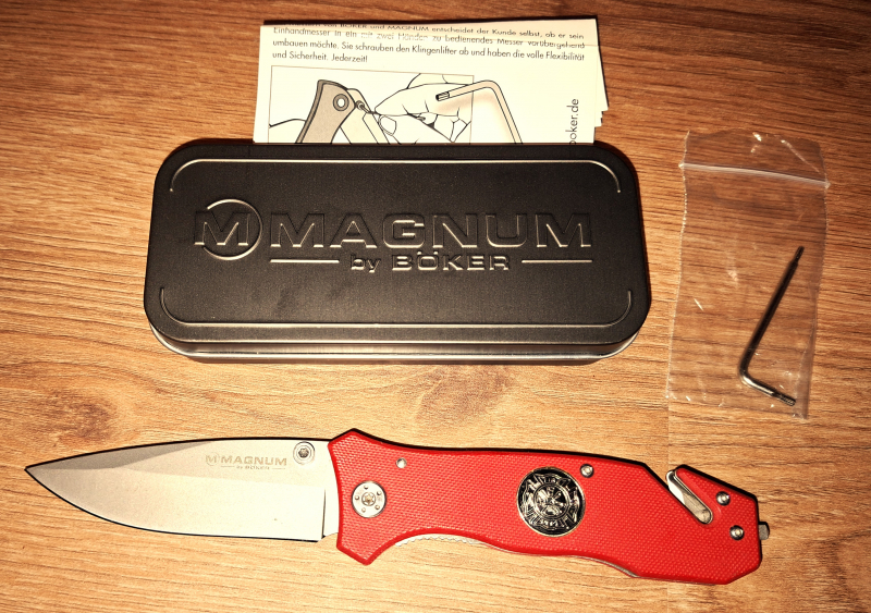 Zum Verkauf kommt hier: Ein - Rettungsmesser - mit Gurtschneider, Glasbrecher Mod. Fire Brigade von der Firma Böker Magnum. Klingenlänge ca. 8,5cm, Klinge Edelstahl(440A), der Daumenpin lässt sich mit dem beigefügten Werkzeug demontieren. Zum Führen in der Öffentlichkeit, beachten Sie Bitte die gültige Gesetzeslage. Weitere Details s. Bild! KEIN VERSAND INS AUSLAND!! Anfragen aus dem Ausland/EU werden nicht mehr beantwortet und Bieter werden umgehend gesperrt! (Aufgrund einiger schlechten Erfahrungen ist dieses leider erforderlich! Lieferung / Rechnungsanschrift NUR innerhalb der BRD!! Der Versand erfolgt nach Zahlungseingang an Sie !! Keine Abholung möglich! Gemäß § 19 UStG erheben und weisen wir keine Umsatzsteuer aus (Kleinunternehmerstatus).ACHTUNG!! VERSENDE NICHT INS AUSLAND AUCH NICHT IN ANDERE EU-LÄNDER!!!!Anfragen zwecklos!! Die angegebene Versandkosten stehen fest und sind NICHT verhandelbar! Wem das nicht passt, bitte hier NICHT bieten!! BITTE BEACHTEN!!! KEIN VERSAND INS EU/AUSLAND!!! Bei dem ersteigern von mehreren Artikeln können sich die Versandkosten aufgrund eines evtl. Höheren Paket Gewicht erhöhen.