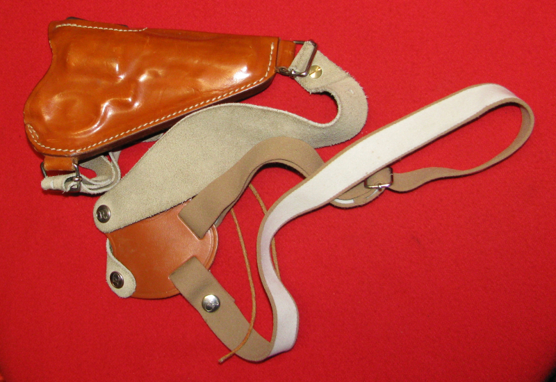 Zum Verkauf kommt ein Handmade Schulterholster für Revolver Smith & Wesson 38-357 / 101 / 63, Holster - Dienstholster